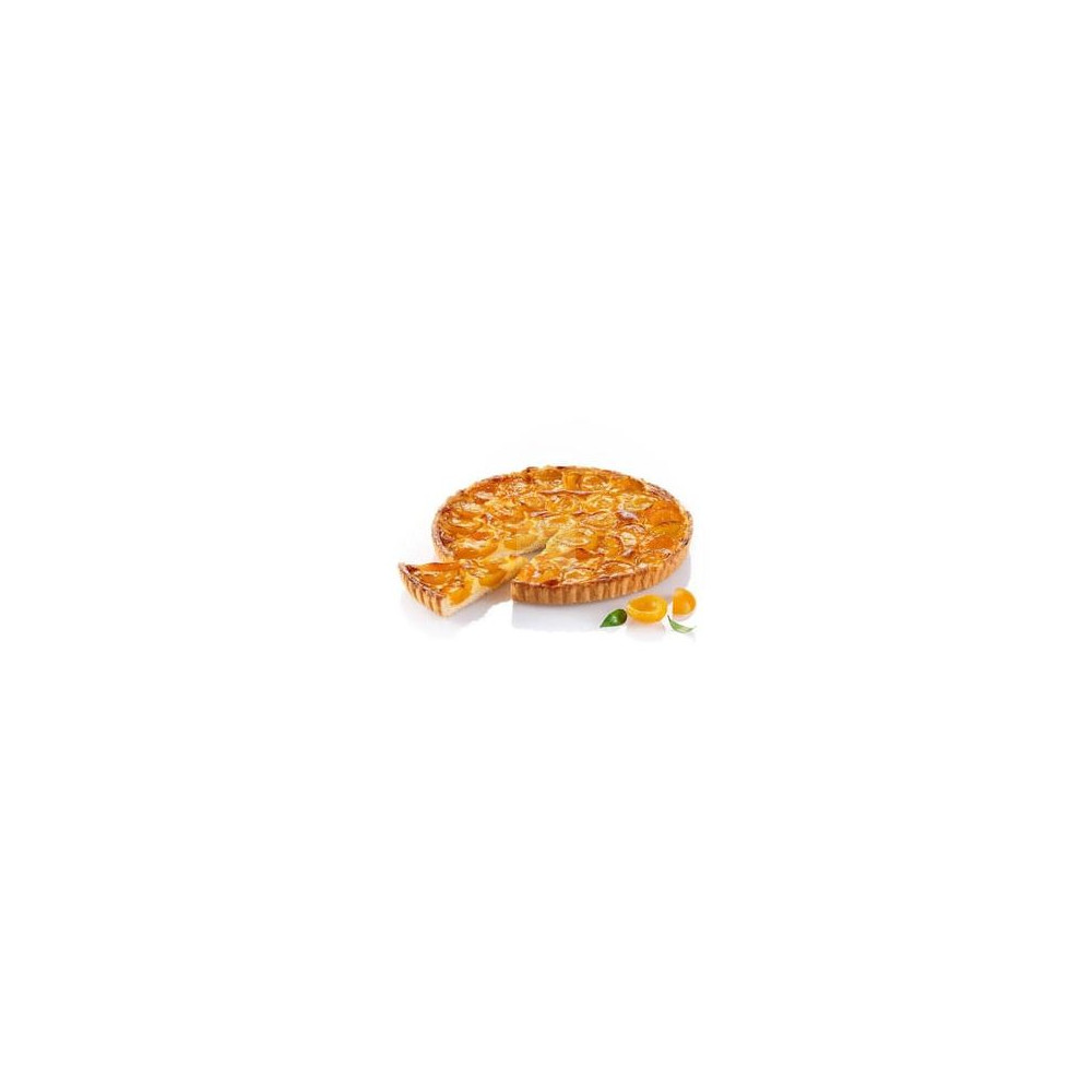Buttery pastry tart filled with sweet and tangy apricot compote, perfect for dessert menus and gourmet pastry displays. تارت معجنات بالزبدة محشو بمربى المشمش الحلو والحامض، مثالي للحلويات.