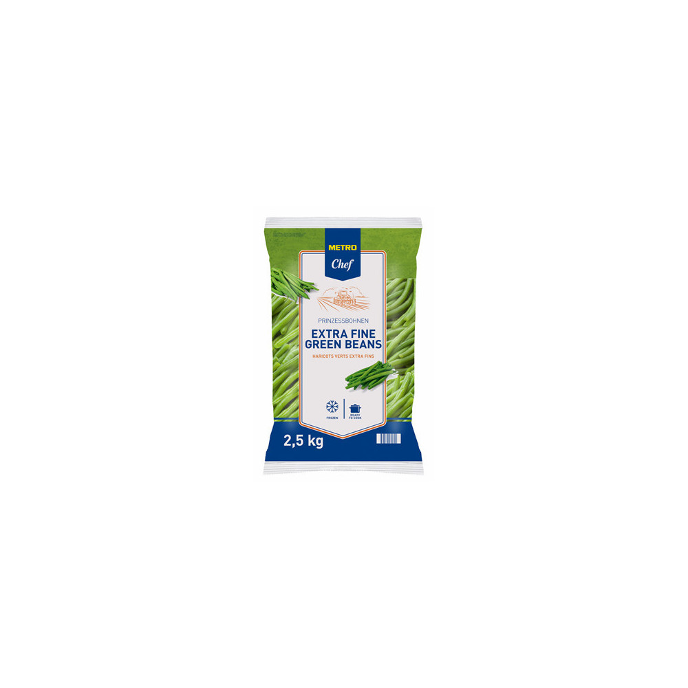 Metro Chef Green Beans Very Fine bring the crisp and fresh taste of premium green beans to your kitchen. Ideal for stir-fries, side dishes, and gourmet salads, these frozen green beans are packaged in a 2.5 kg packet, providing convenience and consistent quality for culinary professionals.