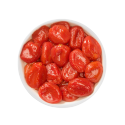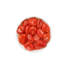 Pizzutello is a tomato variety from South Italy, with a round shape and a tasty and sweet pulp. Picked and processed during the season, this tomato is peeled, slightly dried, and seasoned with spices, aromatic plants, and oil.